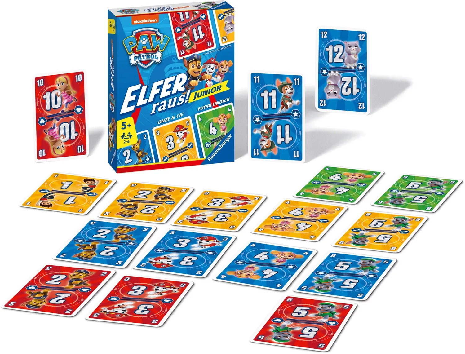 Ravensburger 20953 Paw Patrol Elfer raus! Junior Ravensburger® Kartenspiele Rave Den beliebten Spielklassiker in der Junior-Version ab 5 Jahren gibt es jetzt mit PAW Patrol, den Helfern auf vier Pfoten. Mit einfachen Einstiegsregeln und dem farbenfrohen Design...