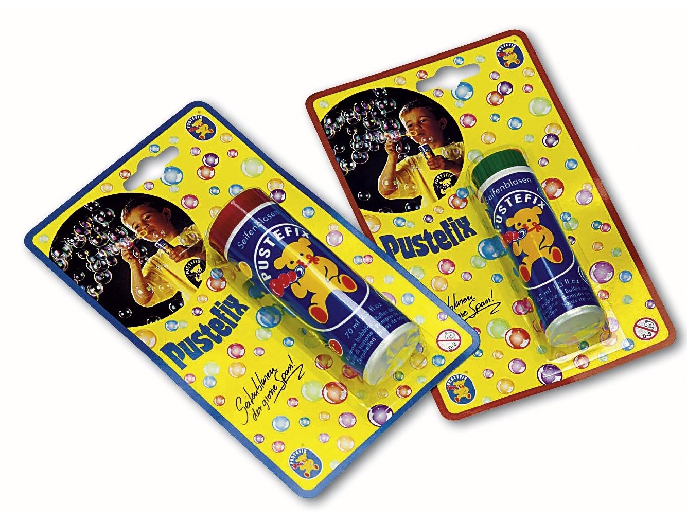 Original Pustefix Grosspackung auf Blisterkarte. Die Seifenblasenflüssigkeit ist ungiftig. Ein toller Seifenblasenspaß für Groß und Klein. Inhalt: ca. 70 ml.