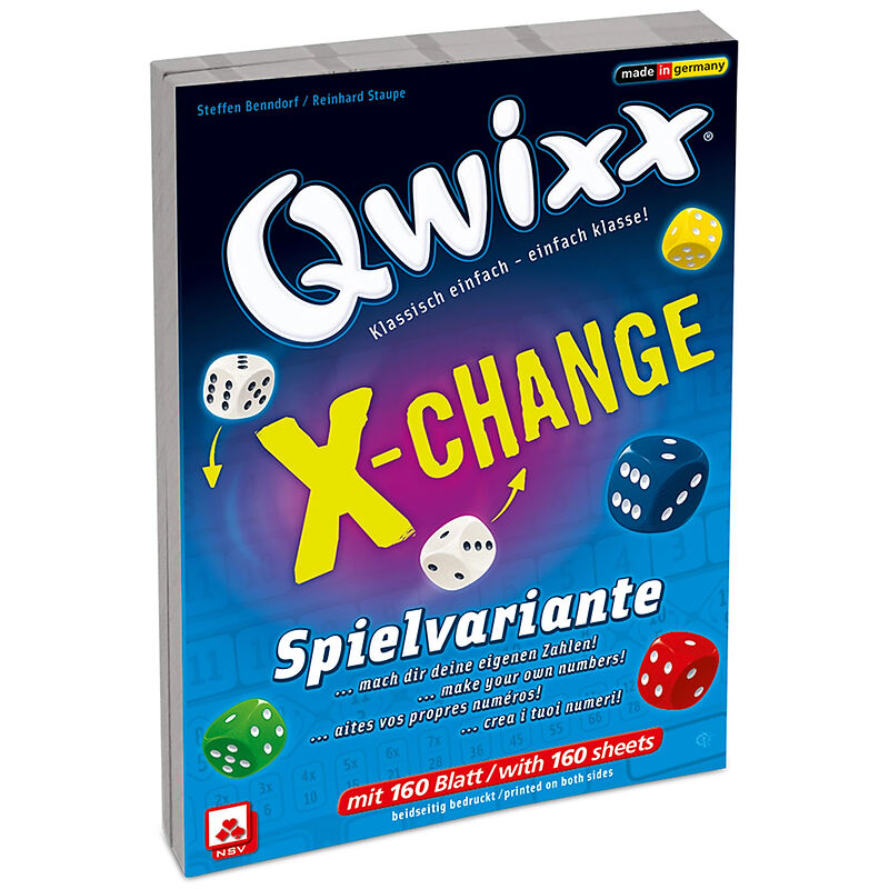 Bei der neuen Variante des beliebten Würfelspiels Qwixx warten ungeahnte Freiheiten auf die Spielerinnen und Spieler. Zusätzlich zu den üblichen vier Farbreihen gibt es eine 9-teilige Tauschtabelle. Ist das Ergebnis der weißen Würfel nicht das, wonach man such...
