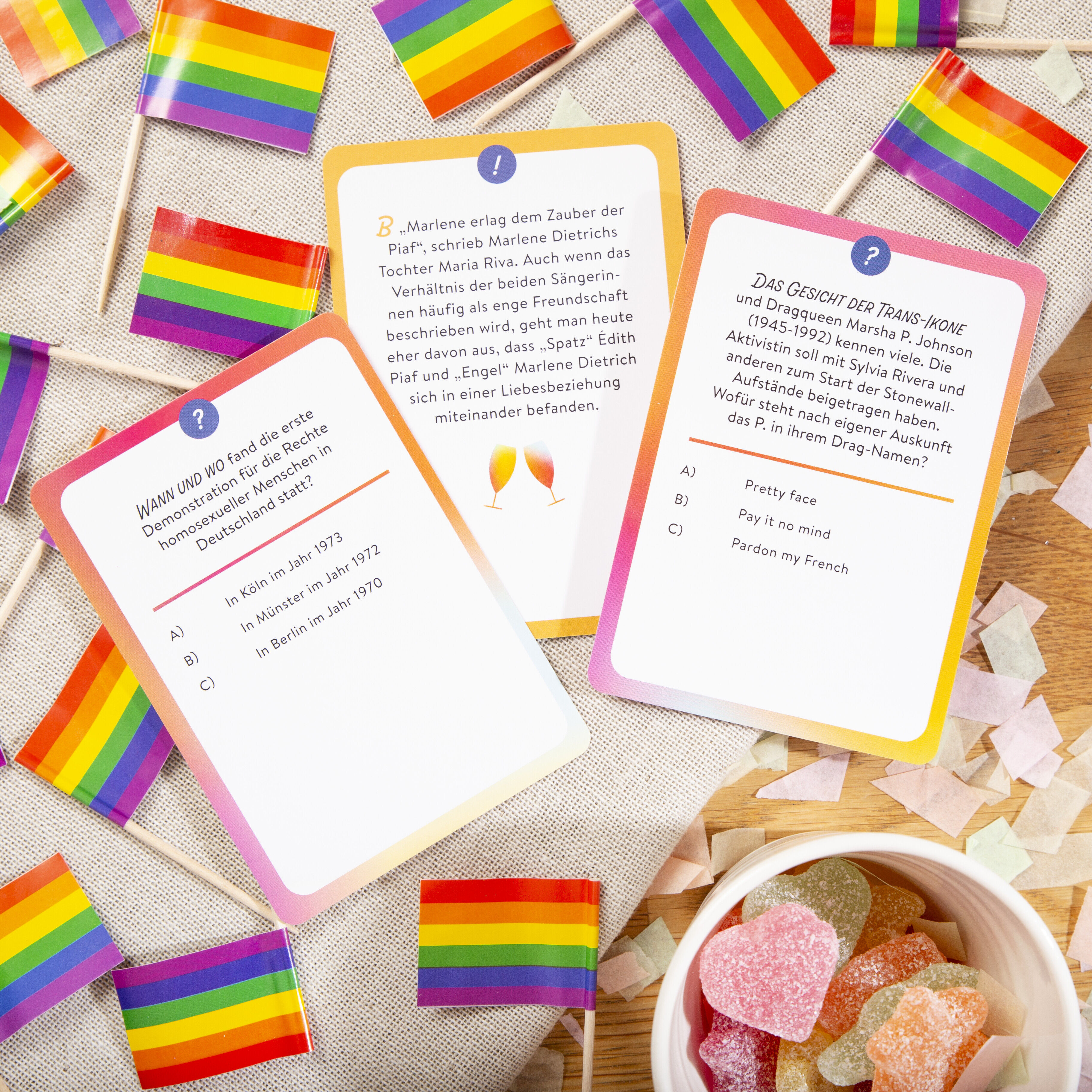 Bunt wie die LGBTIQ+-Community - Das queere Trivia Quiz Warum wurde kurz nach Einführung der Regenbogenflagge ein Streifen wieder entfernt? Warum wurde Oscar Wilde angeklagt? Und was sollen Isaac Newton, Spongebob Schwammkopf und Caitlyn Jenner gemeinsam habe...
