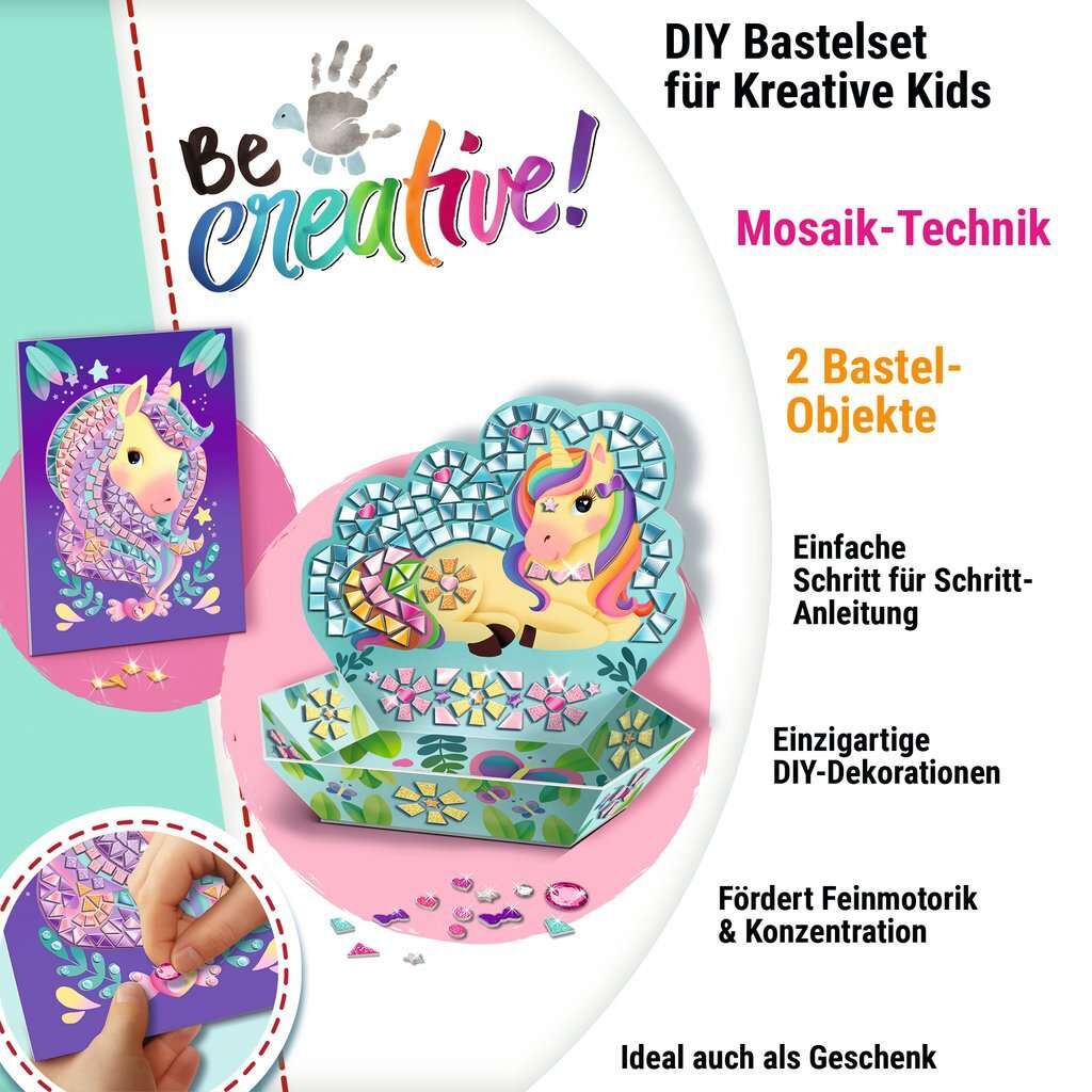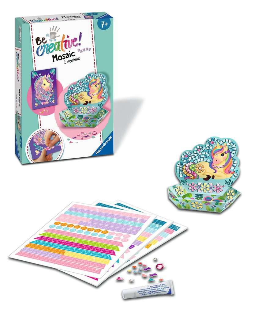 Ravensburger 18238 Mosaic Midi Einhorn, DIY für Kinder ab 7 Jahren Mit dem Ravensburger BeCreative Set Mosaic Midi Einhorn entstehen schöne Bilder und 3D-Objekte aus bunten Mosaikteilen. Zum Einstieg in die Mosaiktechnik dient eine illustrierte Bild-Tafel mit ...
