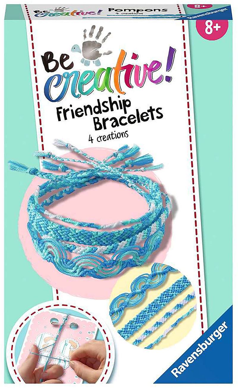 Mit dem Ravensburger BeCreative Set Freundschaftsbändchen können Kinder ab 8 Jahren Armbänder für sich selbst oder Freunde knüpfen. Mit Hilfe der Unterlage zum Knüpfen entstehen ganz einfach Freundschaftsbändchen, die durch 3 verschiedenfarbige Garne individue...