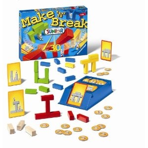 Ravensburger 22009 Make 'n' Break Junior An die Steine - fertig - los! Bei Make 'n' Break Junior spielen alle 2-5 Baumeister gleichzeitig. Jeder hat eigene Bausteine und versucht als Erster, das vorgegebene Bauwerk zu errichten. Sechs Steine in einer Farbe ste...