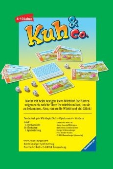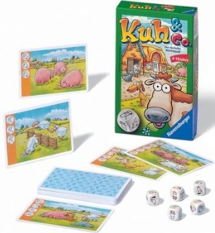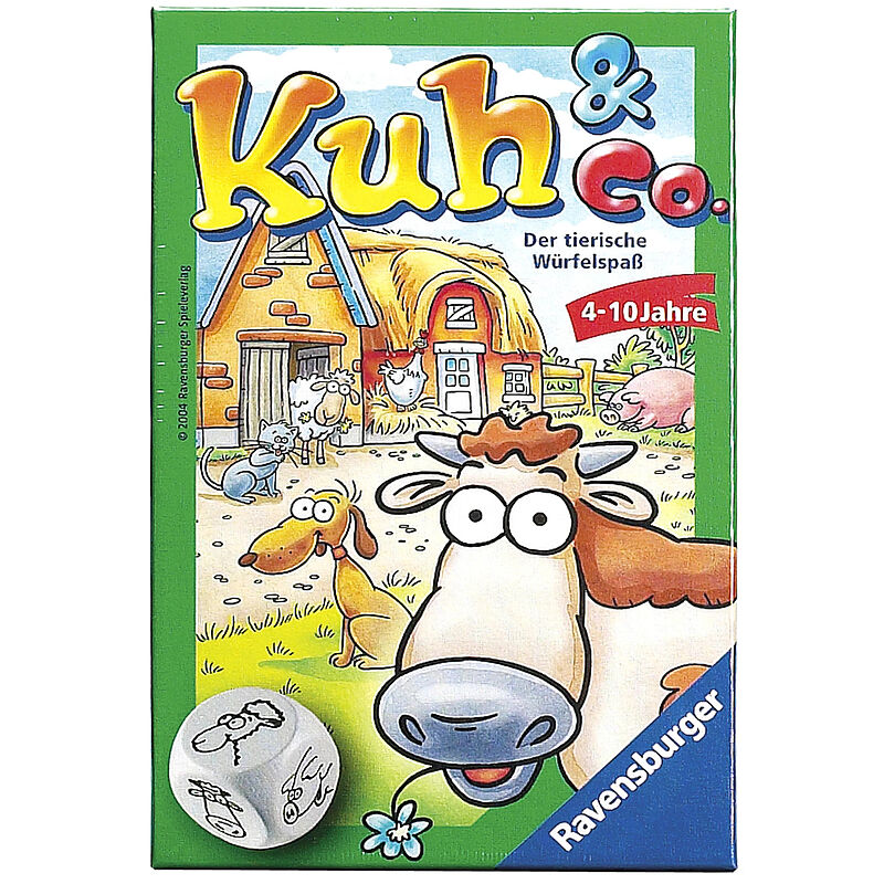 Ravensburger 23160 Kuh & Co. Mitbringspiele Mitbringspiele Der tierische Würfelspaß Kuh und co: Hund, Katze, Schwein, Schaf und Huhn. Wer spielt hier mit wem Die Karten geben vor, welche Tierkombination gewürfelt werden muss. Wer die richtige Kombination hat, ...