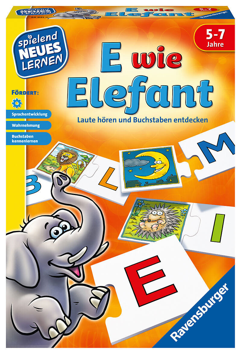 Laute hören und Buchstaben entdecken Affe und Ampel, oder Elefant und Esel. Welchen Anfangslaut hören die Kinder? Affe beginnt mit A. Elefant mit E. Nach und nach suchen die jungen Spieler bei E wie Elefant zu jedem Bild den richtigen Anfangsbuchstaben. Durch ...