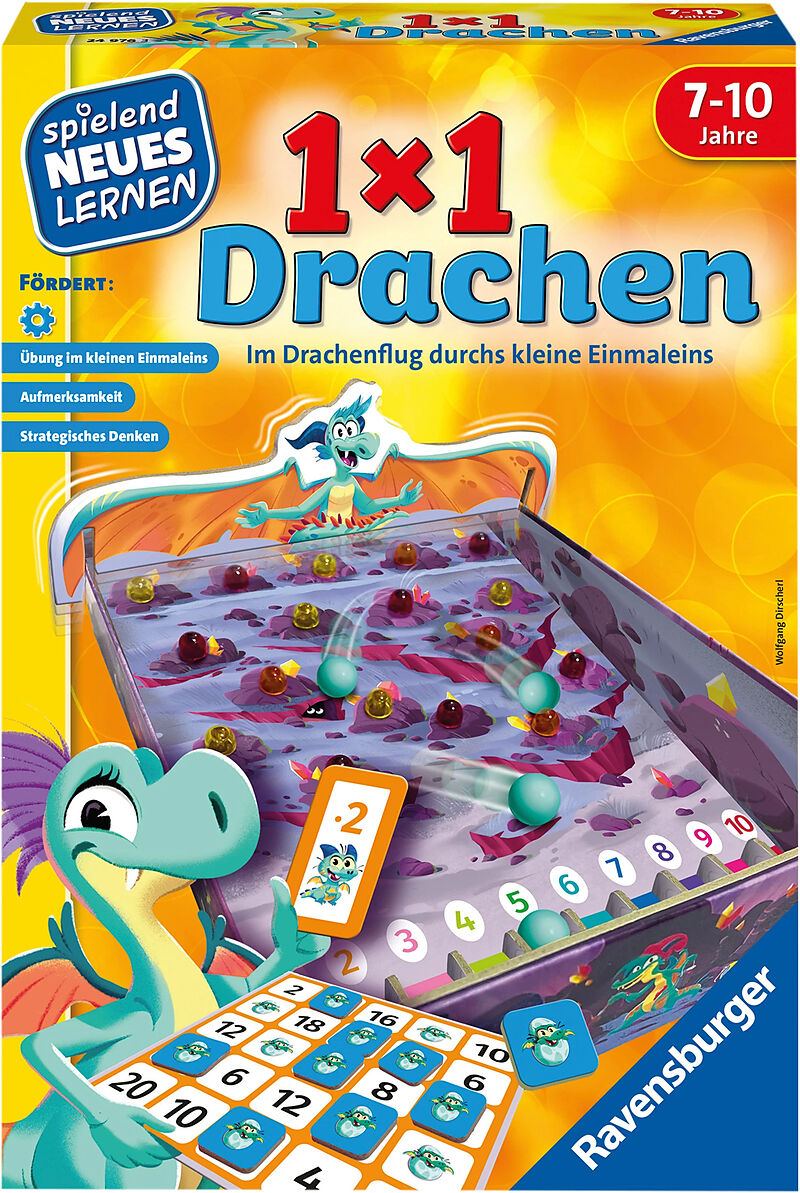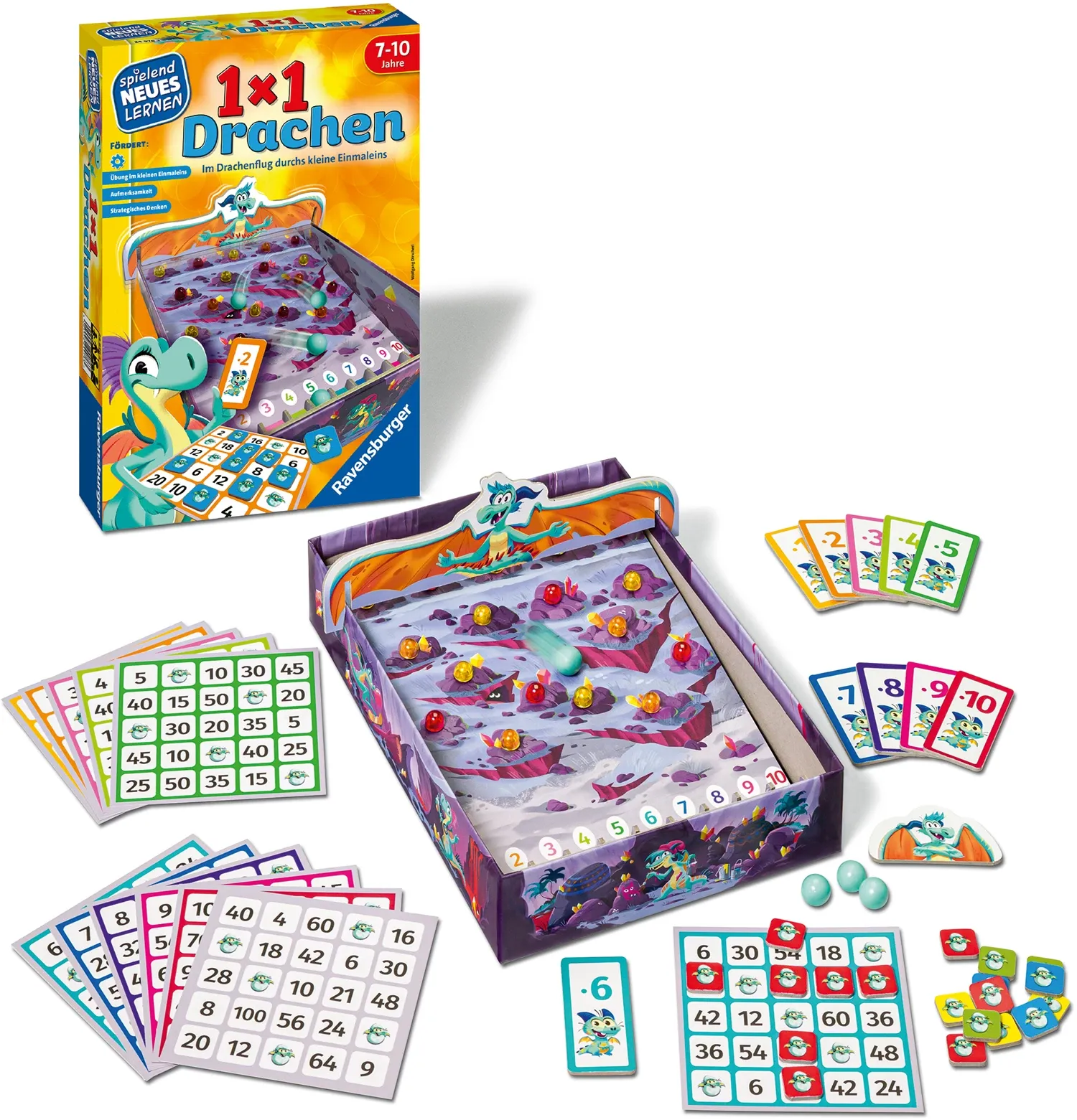 Ravensburger 24976 - 1x1 Drachen - Lernspiel für Kinder, Rechenspiel für Kinder von 7-10 Jahren, für 2-4 Spieler, Zahlenraum 1-100, kleines Einmaleins