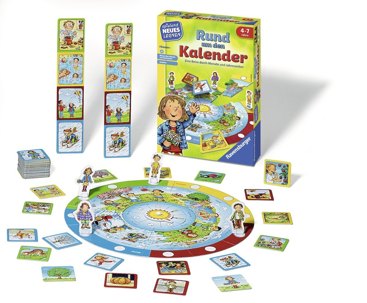 Eine Reise durch Monate und Jahreszeiten Inhalt/Ausstattung: 11 Puzzleteile "Jahreskreis", 1 Sonnen-Drehscheibe, 4 Spielfiguren, 4 Aufstellfüße, 48 Bildkärtchen, 2 Schnappstäbe Spieldauer: ca. 15 Minuten Inhalt Inhalt: 11 Puzzleteile "Jahreskreis", 1...