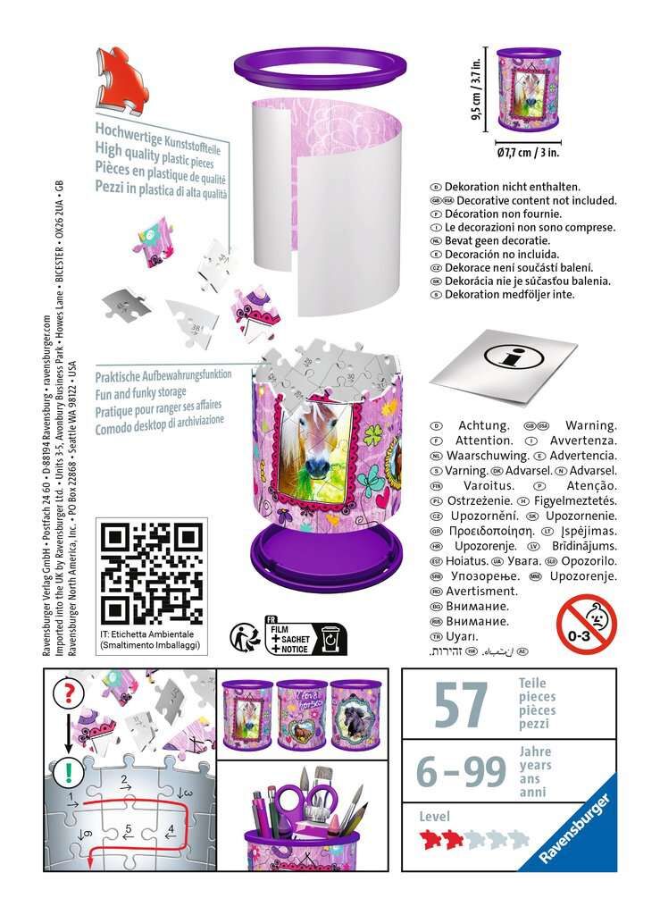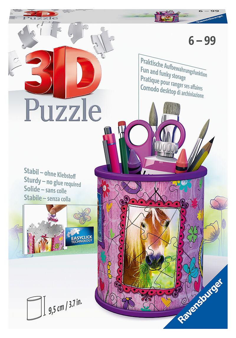 3D Puzzle Stiftehalter PferdeMädchenträume werden wahr # hier schlägt das Herz jeder Pferdeliebhaberin höher! Ob als Stiftebox, Geheimversteck oder modisches Deko-Accessoire, dieser verträumte Stifthalter mit tollen Pferdemotiven verzaubert jedes Kinderzimner ...