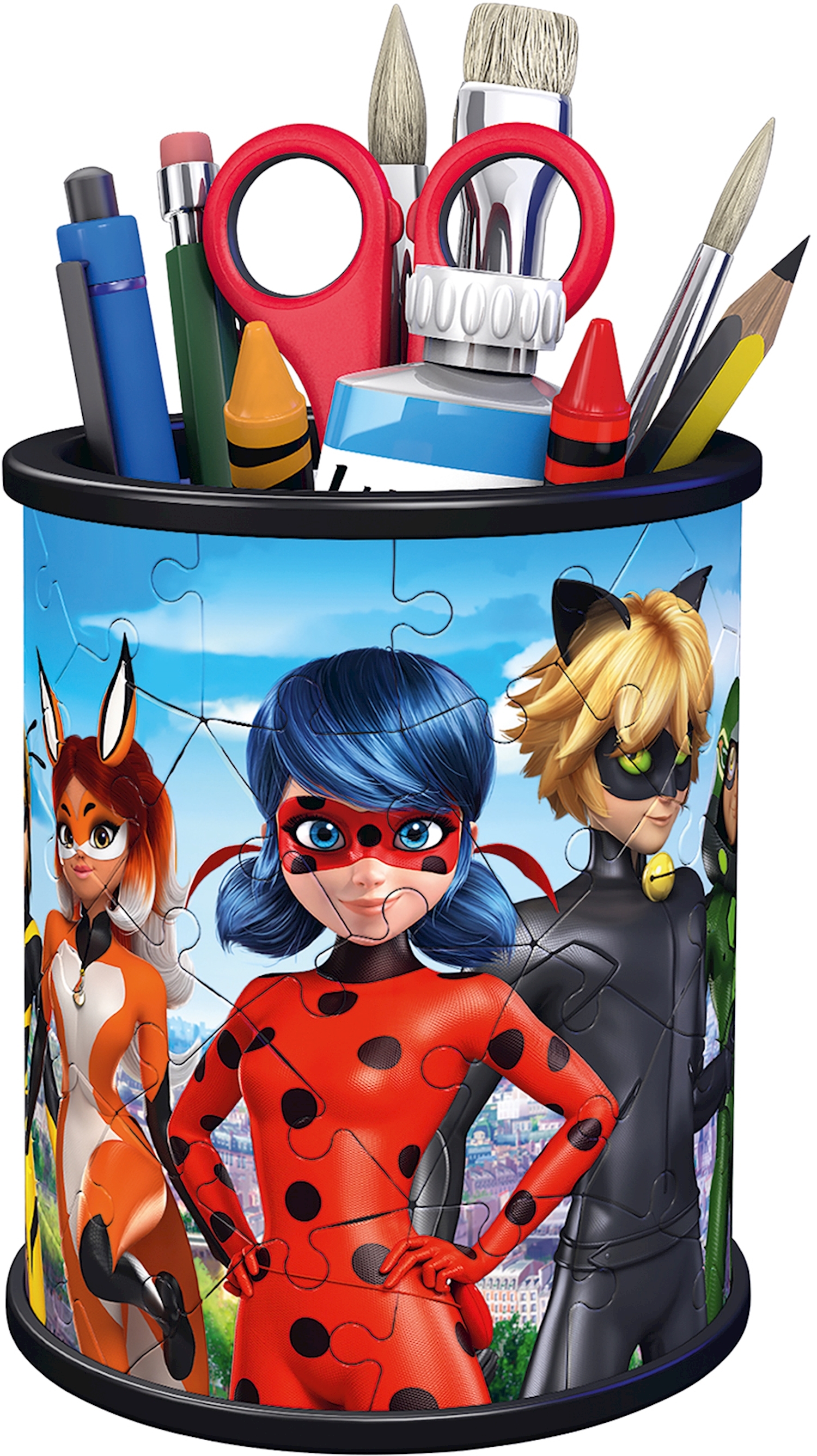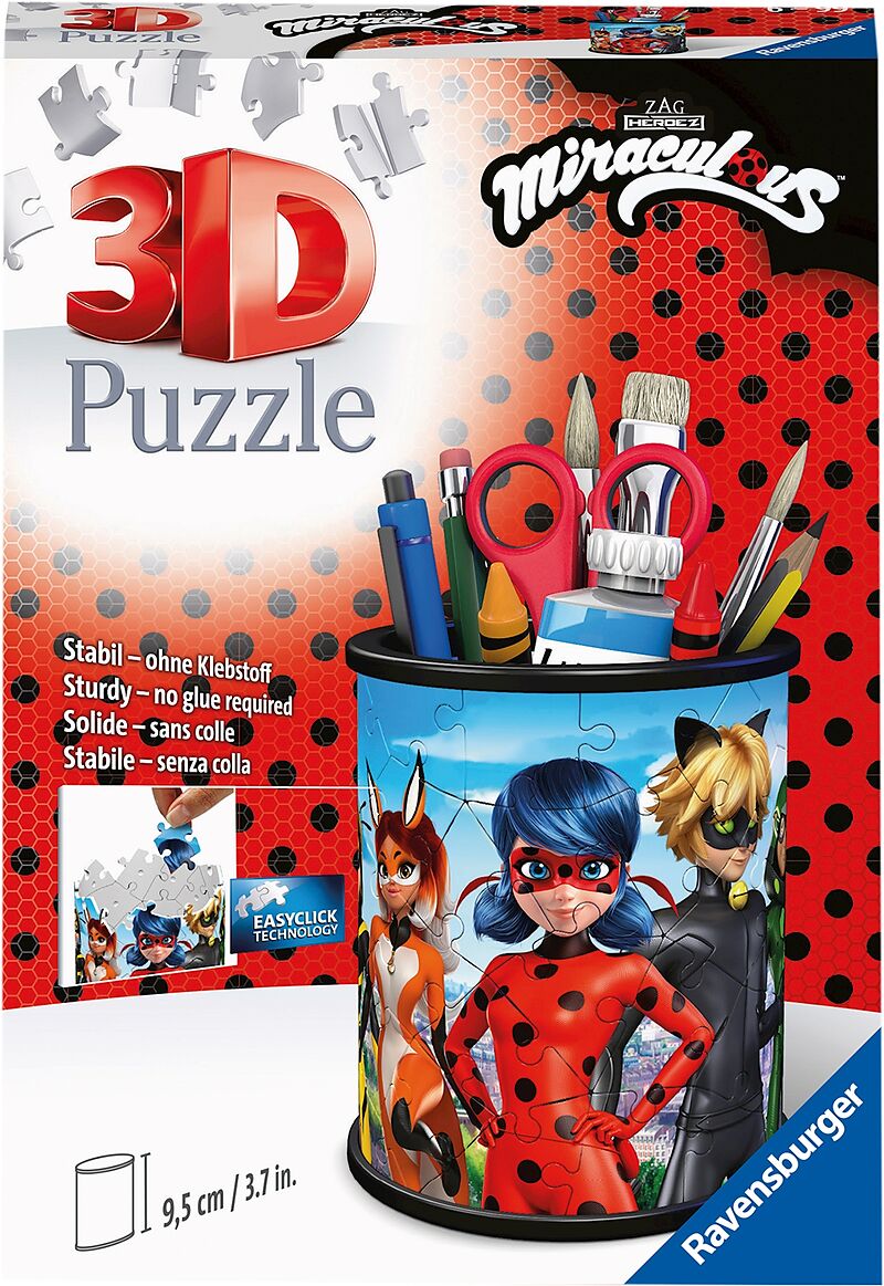 Ravensburger 11278 Puzzle Utensilo - Miraculous 3D 54 Teile Der superpraktische Stiftehalter ist nicht nur ein dekorativer Blickfang auf jedem Schreibtisch, sondern bietet auch reichlich Platz für allerlei Schnickschnack.Ein 3D Puzzle, das nicht nur Puzzlespaß...