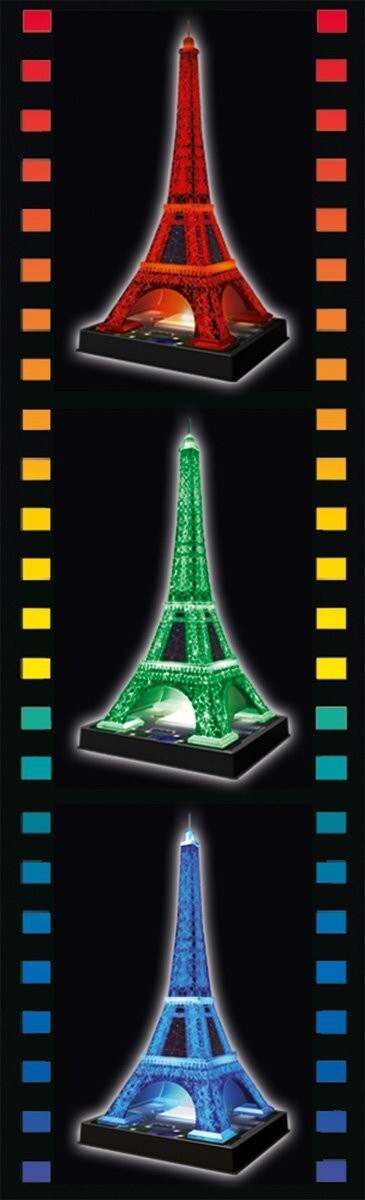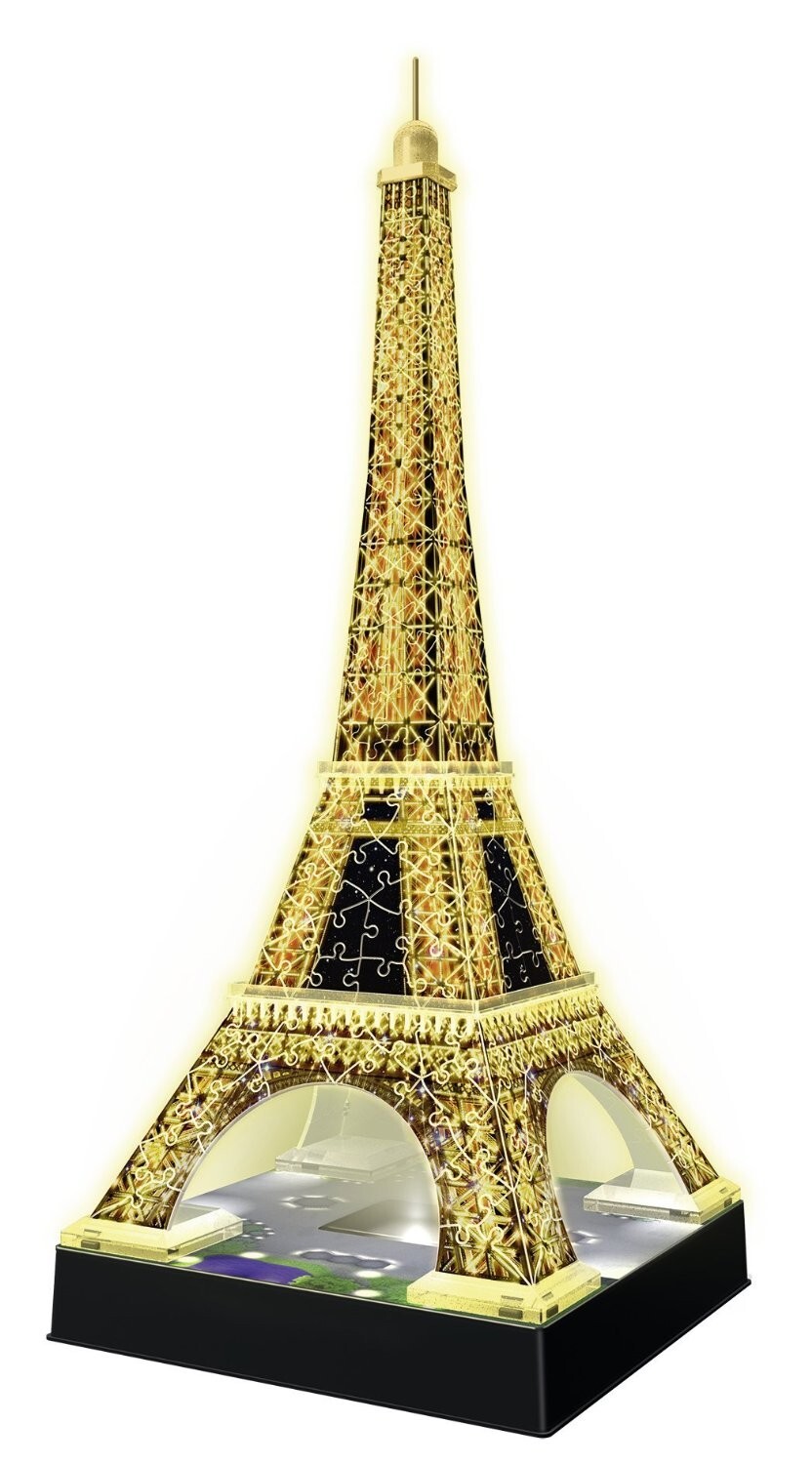 Ravensburger 12579 Puzzle Eiffelturm bei Nacht 3D 216 Teile Dieser Ravensburger 3D Puzzle-Ball im coolen Design wird mit einem Händeklatschen zum außergewöhnlichen Nachtlicht, wenn der Leuchtsockel den Ball von innen erstrahlen lässt.Aus gewölbten Kunststoff-P...