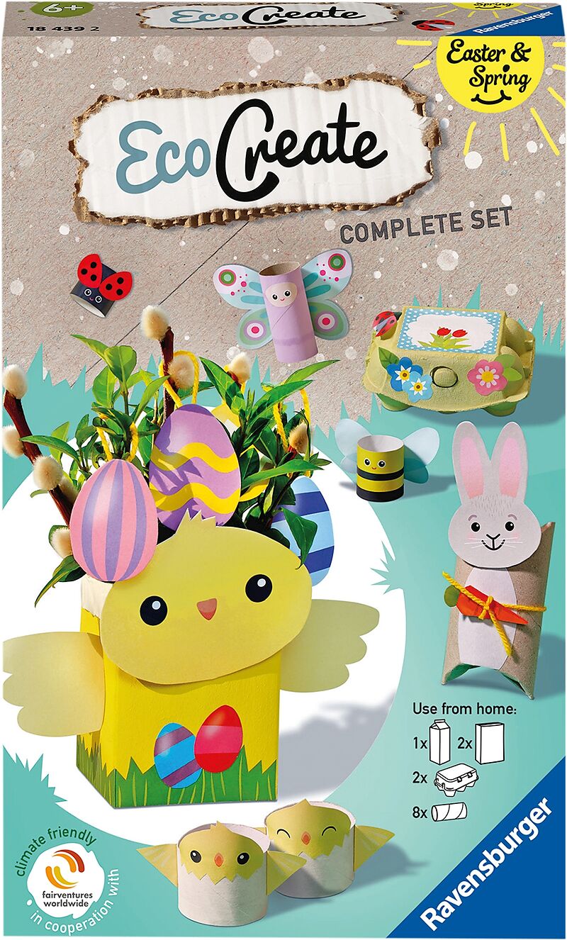 Mit EcoCreate können Kinder mit nicht mehr benötigten Materialien von zu Hause und den im Produkt enthaltenen Bastelmaterialien tolle Upcycling Projekte basteln. Die einfach gehaltene Anleitung führt durch jedes Projekt.