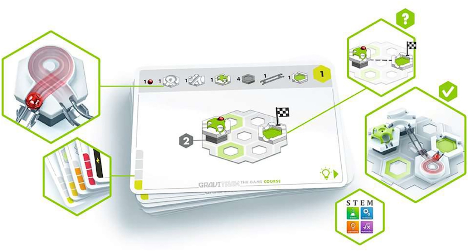 Neue Kurvensteine und Aufgabenkarten mit unterschiedlichen Schwierigkeitsstufen laden zum Rätseln ein. Erst wenn alle Teile verbaut sind und die Kugel vom Start bis ins Ziel rollt ist die Challenge geknackt. - Es wird kein Starter-Set benötigt.