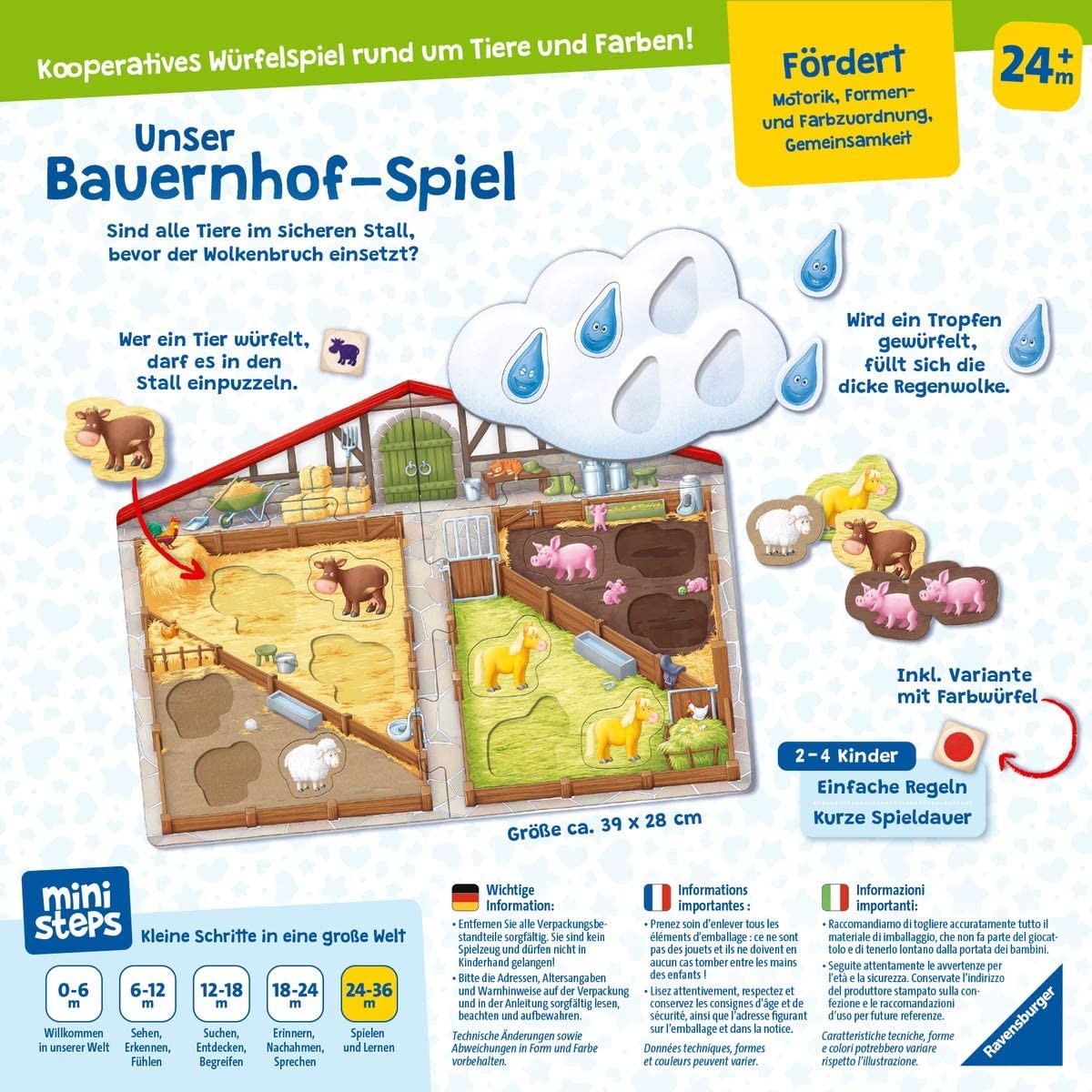 Kooperatives Würfelspiel und Puzzlespaß in einem! Mit gemeinsamem Spielziel und leicht verständlichen Regeln. Oje, über dem Bauernhof zieht eine dicke Regenwolke auf, aber die Tiere befinden sich noch auf der Weide! Die Kinder versuchen gemeinsam die Tiere in ...