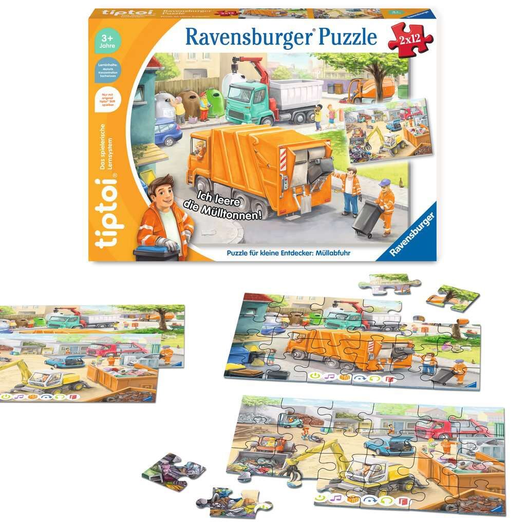 Welche Aufgaben hat die Müllabfuhr Wie werden Mülltonnen geleert Und welchen Müll gibt es eigentlich Ein Tag mit der Müllabfuhr ist ganz schön spannend. Sobald die Kinder das Puzzle zusammengesetzt haben, gehen sie mit tiptoi auf Entdeckungsreise. Dabei erfahr...