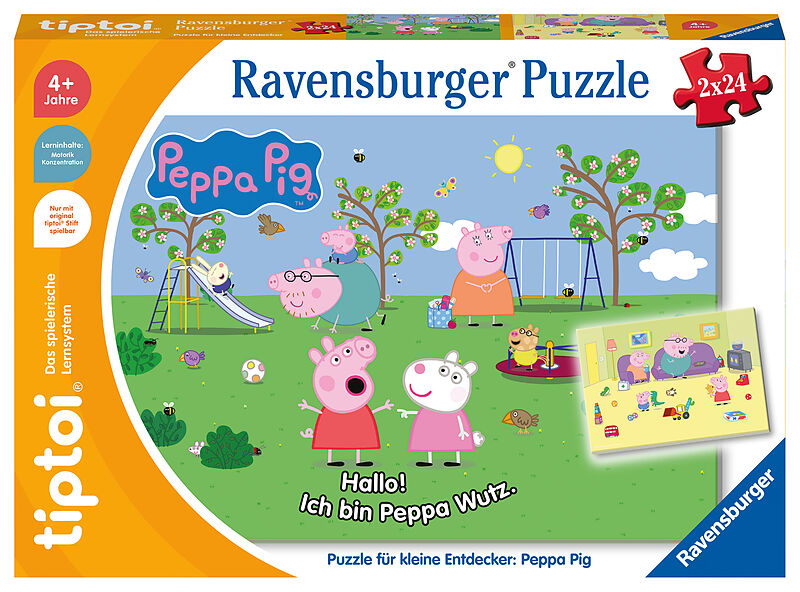 Puzzeln und entdecken! tiptoi sorgt für doppelten Spaß mit Peppa Wutz, ihrem kleinen Bruder Schorsch, Mama Wutz und Papa Wutz. Sobald die Kinder die Puzzles zusammengesetzt haben, erleben sie mit tiptoi einen lustigen Tag im Leben der rosaroten Familie: Peppa ...