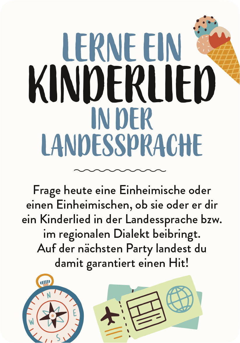 "... und dann wurden wir vom Schwager unseres Taxifahrers zu seiner Hochzeit eingeladen und haben bis in den Morgen gefeiert!" Wer will nicht solche abenteuerlichen Geschichten aus dem Urlaub zum Besten geben? Mit den Challenges auf diesen Karten kö...