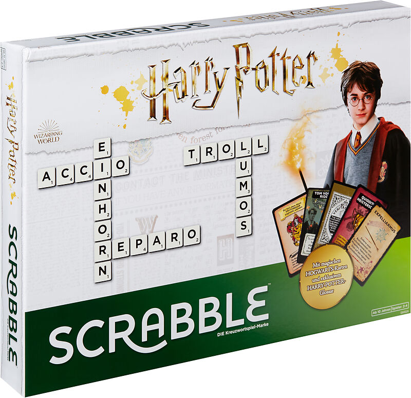 Mattel GMG29 Scrabble Harry Potter (D) Diese Sonderedition von Scrabble ist dem einzigartigen Vokabular von Harry Potter und seinen Freunden gewidmet! Wie das Original-Scrabble enthält auch diese Version ein Spielbrett, vier Buchstabenbänkchen, einen Buchstabe...