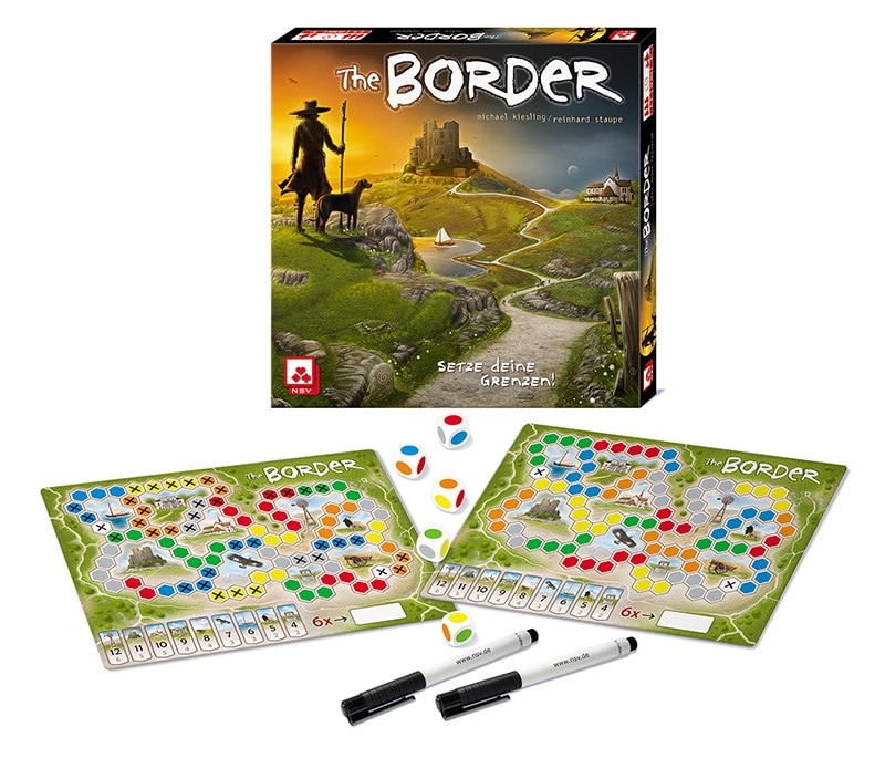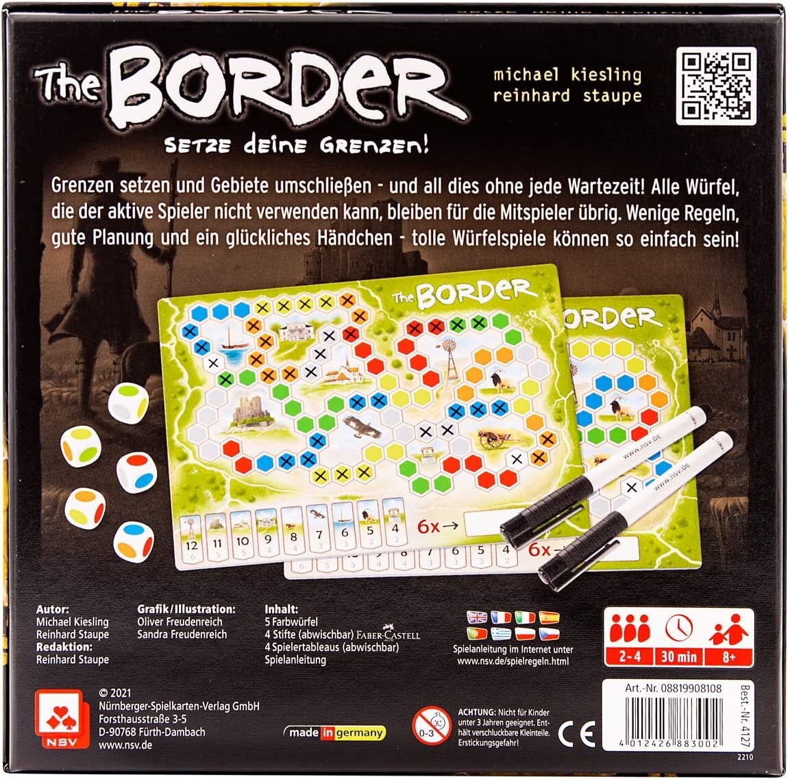 THE BORDER Setze deine Grenzen! Grenzen setzen und Gebiete umschließen und all dies ohne jede Wartezeit! Alle Würfel, die der aktive Spieler nicht verwenden kann, bleiben für die Mitspieler übrig. Wenige Regeln, gute Planung und ein glückliches Händchen tolle ...