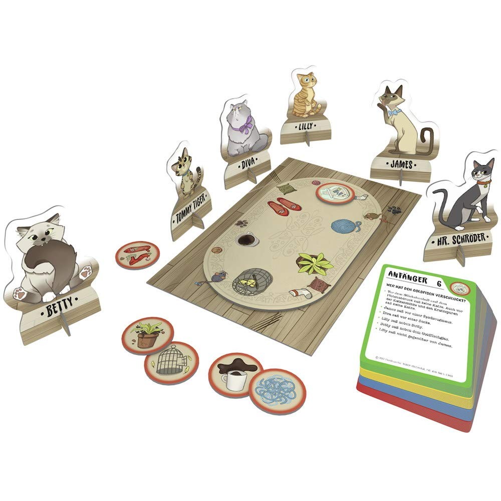 Verschütteter Kaffee, ein fehlender Goldfisch und ein zerbrochener Blumentopf. Welche der sechs Katzen ist der Übeltäter? Nur wer mit logischem Geschick die am Tatort hinterlassenen Pfotenabdrücke, Katzenspielzeuge und anderen Hinweise miteinander kombinieren ...
