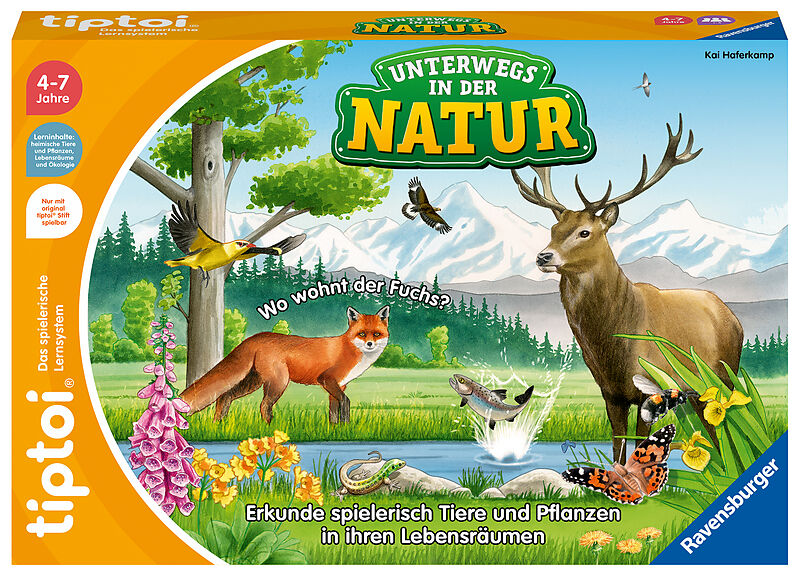 Wer zwitschert im Wald? Was versteckt sich im Schilf? Wo wächst das Edelweiß?tiptoi nimmt uns mit auf eine Entdeckungsreise in die heimische Natur. Die Spieler ordnen Tiere und Pflanzen ihren Lebensräumen zu Wiese, Teich, Wald, Berge und Meeresküste. Dabei tre...Wer zwitschert im Wald? Was versteckt sich im Schilf? Wo wächst das Edelweiß?tiptoi nimmt uns mit auf eine Entdeckungsreise in die heimische Natur. Die Spieler ordnen Tiere und Pflanzen ihren Lebensräumen zu Wiese, Teich, Wald, Berge und Meeresküste. Dabei treffen sie auf Experten wie die Jägerin oder den Wattführer, die von ihrer nachhaltigen Arbeit erzählen und durch kleine Aufgaben das Wissen der Kinder vertiefen. tiptoi-Stift nicht enthalten. Muss separat erworben werden.