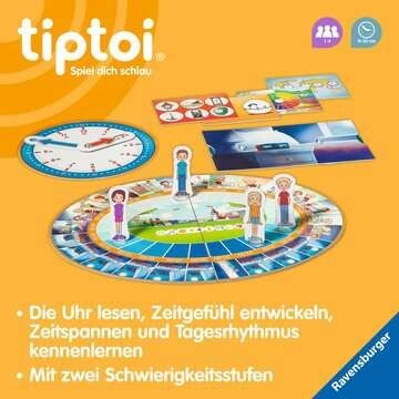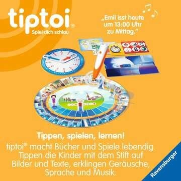 Das tiptoi-Spiel Wir lernen die Uhr verknüpft Uhrzeiten mit Situationen aus dem Alltag. Die Kinder begleiten Emil und seine Familie durch einen Schul- oder Freizeittag und lernen so spielerisch die Uhr zu lesen. tiptoi erklärt die Spielregeln und stellt spannende Fragen rund um die Themen Uhr und Zeit. Alltagsnah lernen Kinder ab 6 Jahren, die Uhr zu lesen. Sowohl als Einzelspiel als auch in der Gruppe mit bis zu vier Kindern ein toller Lernspaß.