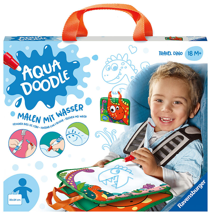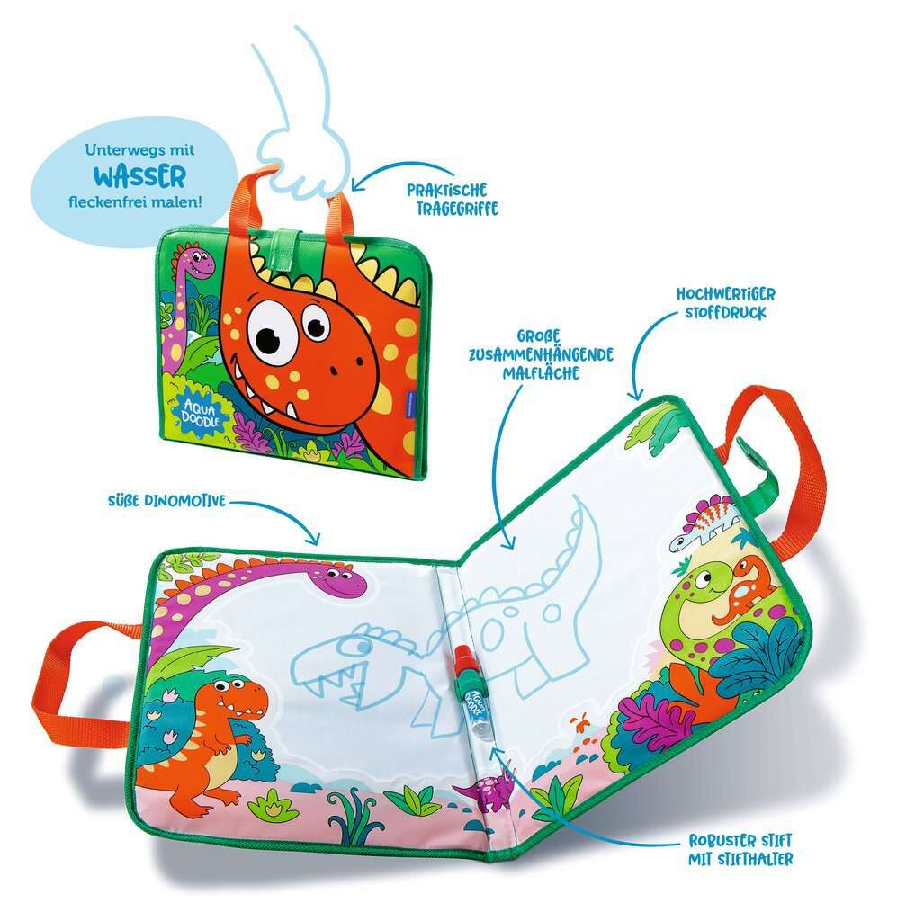 Aquadoodle Travel Dino ist ideal zum ersten Malen unterwegs! Kleinkinder ab 18 Monaten malen sicher und fleckenfrei mit Wasser # Hände und Sitze bleiben sauber. Trocknen die Striche, verschwinden sie vollständig und der Spaß beginnt von Neuem. Aufgeklappt dien...