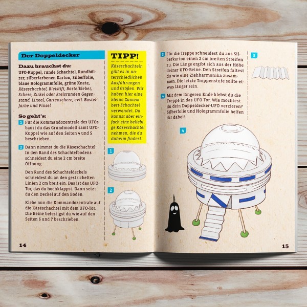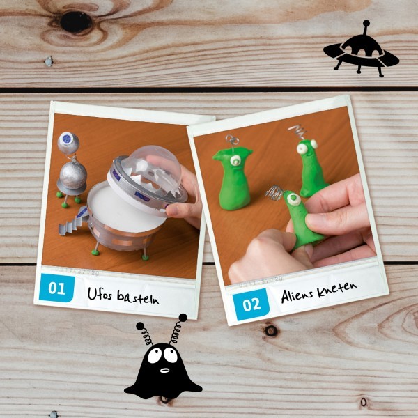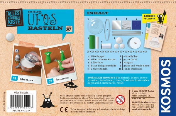 Futuristisch! Mit der AllesKönnerKiste UFOs Basteln von KOSMOS eigenes Raumschiff-Modell entwerfen. Aus unterschiedlichen Materialien intergalaktische Flugobjekte und coole Aliens basteln! Mit Metallic- und Glitzerfolie, Silberkarton, Kunststoffkuppel und Drah...