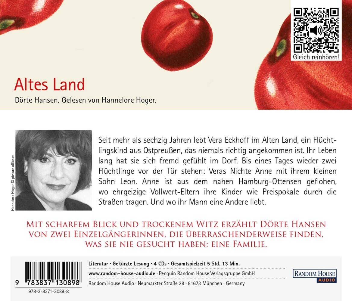 Altes Land Hannelore Hoger "Menschlich sehr berührend" Hannelore Hoger Das "Polackenkind" ist die fünfjährige Vera auf dem Hof im Alten Land, wohin sie 1945 aus Ostpreußen mit ihrer Mutter geflohen ist. Ihr Leben lang fühlt sie sich fremd i...| 1 | Altes Land | 05:57 | |