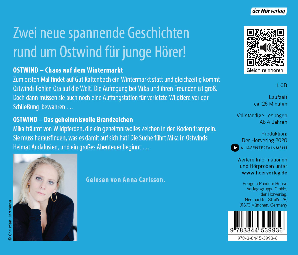 Zwei neue spannende Geschichten rund um Ostwind für junge Hörer! OSTWIND - Chaos auf dem Wintermarkt Zum ersten Mal findet auf Gut Kaltenbach ein Wintermarkt statt und gleichzeitig kommt Ostwinds Fohlen Ora auf die Welt! Die Aufregung bei Mika und ihren Freund...