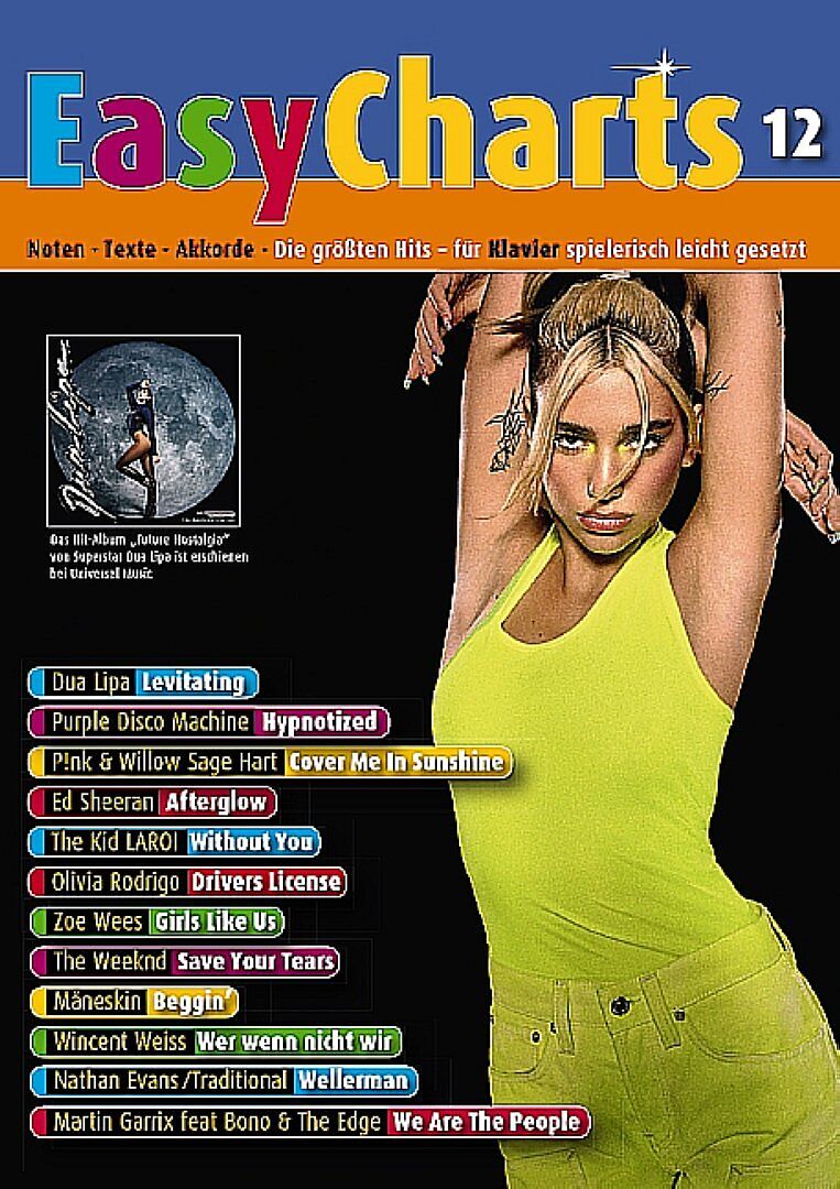 Mit Easy Charts 12 erscheint eine Sammlung aktueller Hits, die Anfänger am Klavier schon nach dem ersten Unterrichtsjahr spielen können. Dabei dürfen die großen Hits angesagter Popstars natürlich nicht fehlen: Airplay-Dauerbrenner von Dua Lipa (Levitating), P!...
