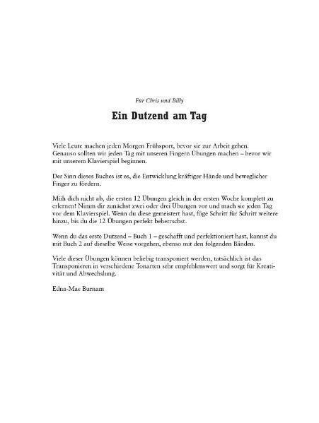 Die bekannte englische Serie A Dozen A Day, die Vorübungen und viele Technik-Übungen für den Pianisten zum Inhalt hat, gibt es nun in der deutschen Übersetzung. Ziel der Ausgaben ist die Unterstützung und Stärkung der Hände sowie die Flexibilität der Finger. B...
