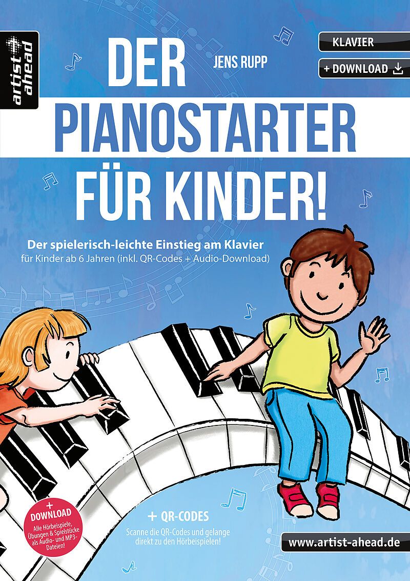 "Der PianoStarter für Kinder" - die zeitgemäße Klavierschule, welche Kinder motiviert und mit jeder Menge Spielspaß schnell und zielgerichtet zum erfolgreichen Klavierspielen führt.