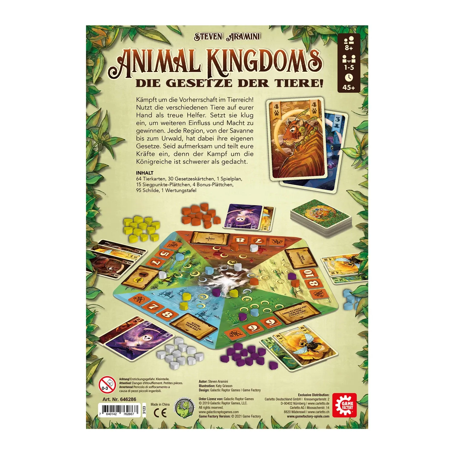 Animal Kingdoms (d) Kämpft um die Vorherrschaft im Tierreich! Nutzt die verschiedenen Tiere auf eurer Hand als treue Helfer. Setzt sie klug ein, um weiteren Einfluss und Macht zu gewinnen. Jede Region, von der Savanne bis zum Urwald, hat dabei ihre eigenen Ges...