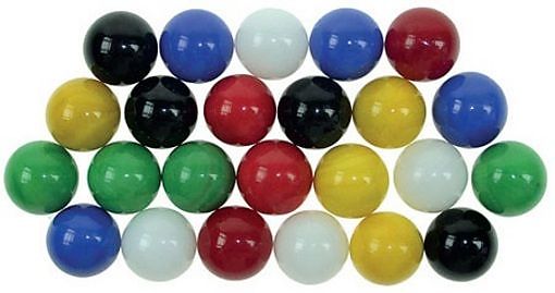 Murmelset für das Brändi Dog in den Farben rot, grün, gelb, blau, schwarz und weiss (je 4 Murmeln).
