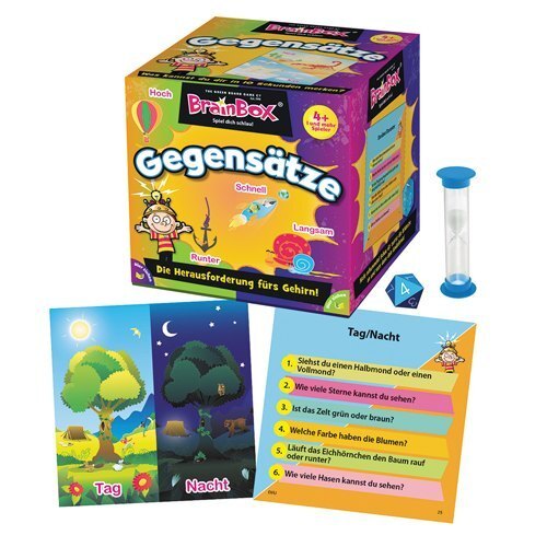 Auf jeder Karte sind zwei Bilder zu sehen, die einen Gegensatz zeigen - zum Beispiel Heiß/Kalt, Groß/Klein, Tag/Nacht oder Eingang/Ausgang. Passende, fantasievolle Illustrationen mit einprägsamen Szenen zu den einzelnen Worten machen die Welt der Gegensätze le...