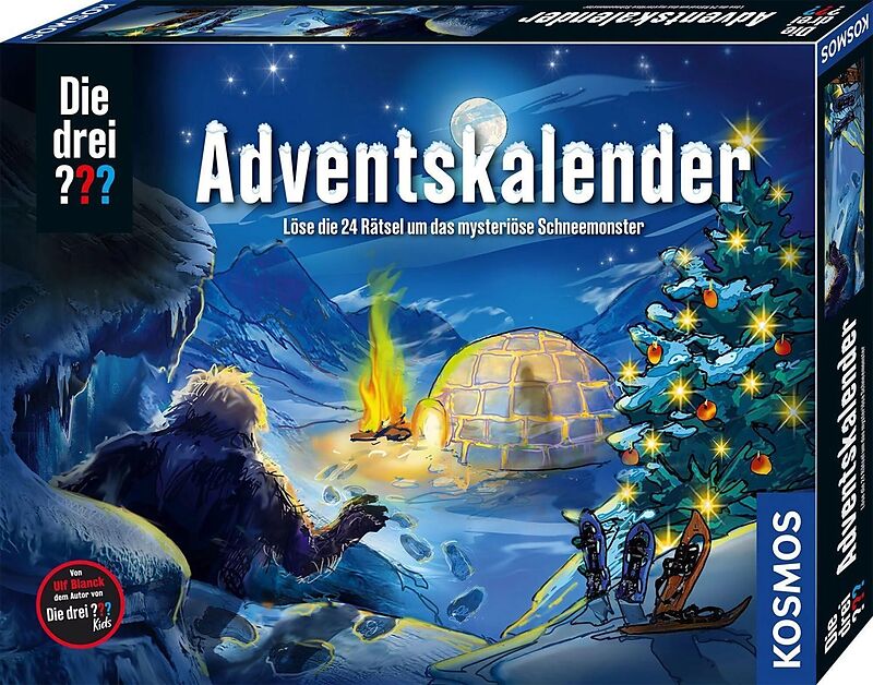 Adventskalender 2023 mit spannender Krimi-Geschichte zum Knobeln. Nur noch 24 Tage bis Weihnachten und Die drei ??? stürzen sich in ein aufregendes Abenteuer: Wer zuerst den Schneemenschen in den Magic Mountains fotografiert, erhält eine Belohnung. Genau das R...