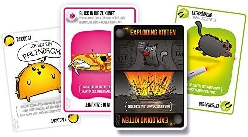Exploding Kittens Exploding Kittens ist ein explosiver Mix aus Spannung und Humor. In diesem Kartenspiel ziehen die Spieler abwechselnd Karten, um verschiedene Arten von Karten zu sammeln und so zu vermeiden, auf eine explodierende Katze zu stoßen. Mit verrück...