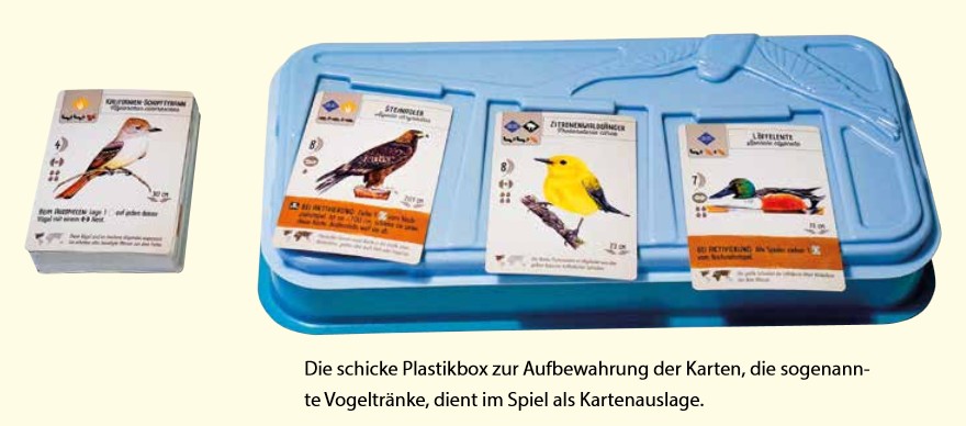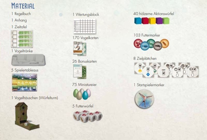 Flügelschlag 170 Vogelkarten bilden den Kern des Spieles Flügelschlag. Die Spieler sammeln diese Karten und versuchen daraus starke Kombinationsketten auf ihren Spieltableaus zu legen. Drei verschiedene Lebensräume stehen für drei Kombinationsketten, die gebil...