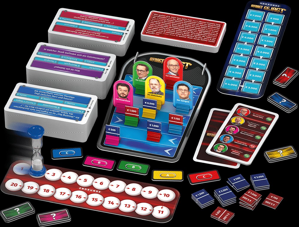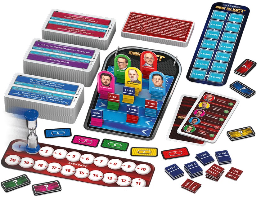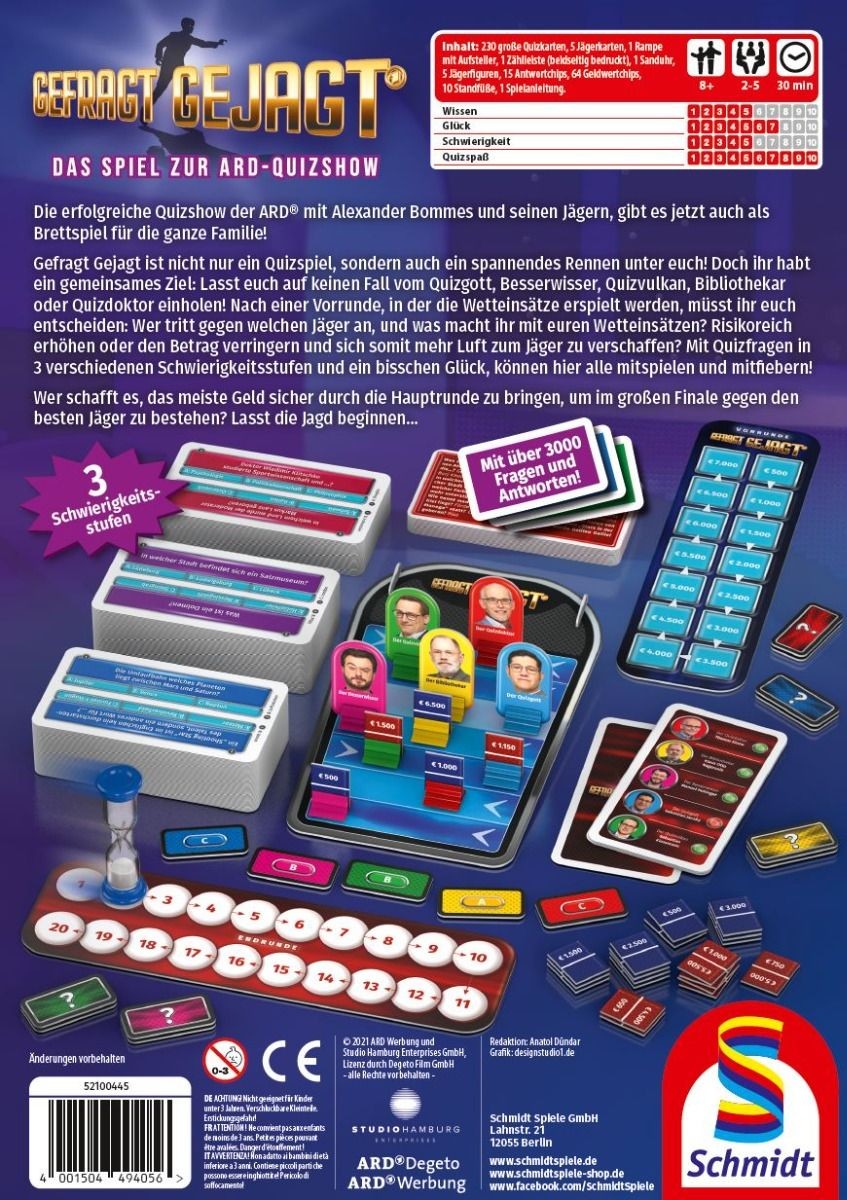 Schmidt Spiele 49405 Gefragt Gejagt Die erfolgreiche Quizshow der ARD® mit Alexander Bommes und seinen Jägern, gibt es jetzt auch als Brettspiel für die ganze Familie! Gefragt Gejagt ist nicht nur ein Quizspiel, sondern ein spannendes Rennen unter euch! Nach e...