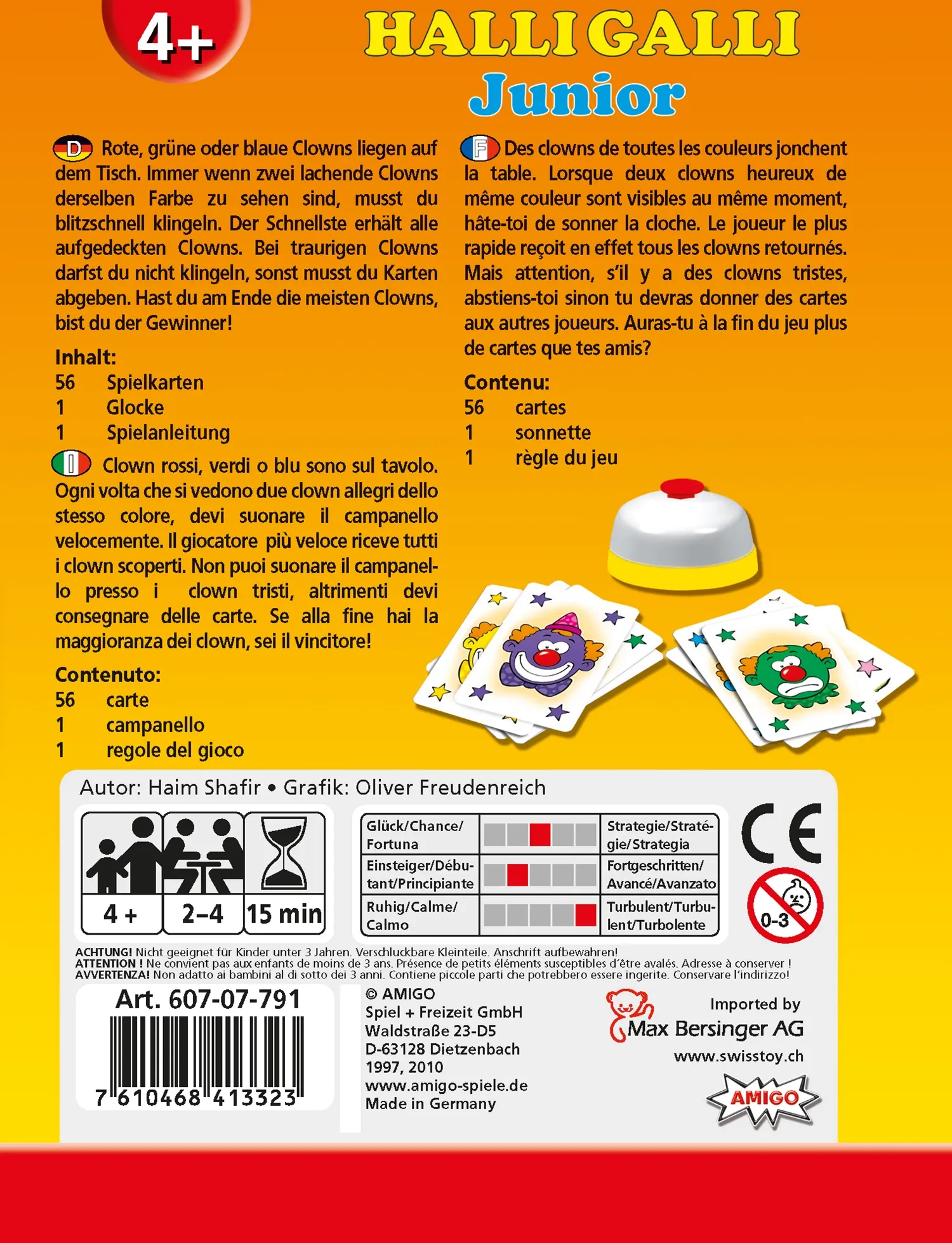 Der Riesenspass mit der Glocke, jetzt auch für die Allerkleinsten. Wie schon beim furiosen Dauerbestseller Halli Galli geht es auch in der Junior-Ausgabe konzentriert und blitzschnell zur Sache.