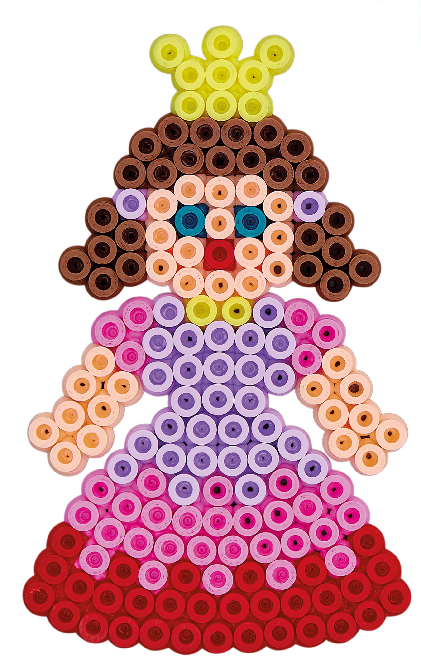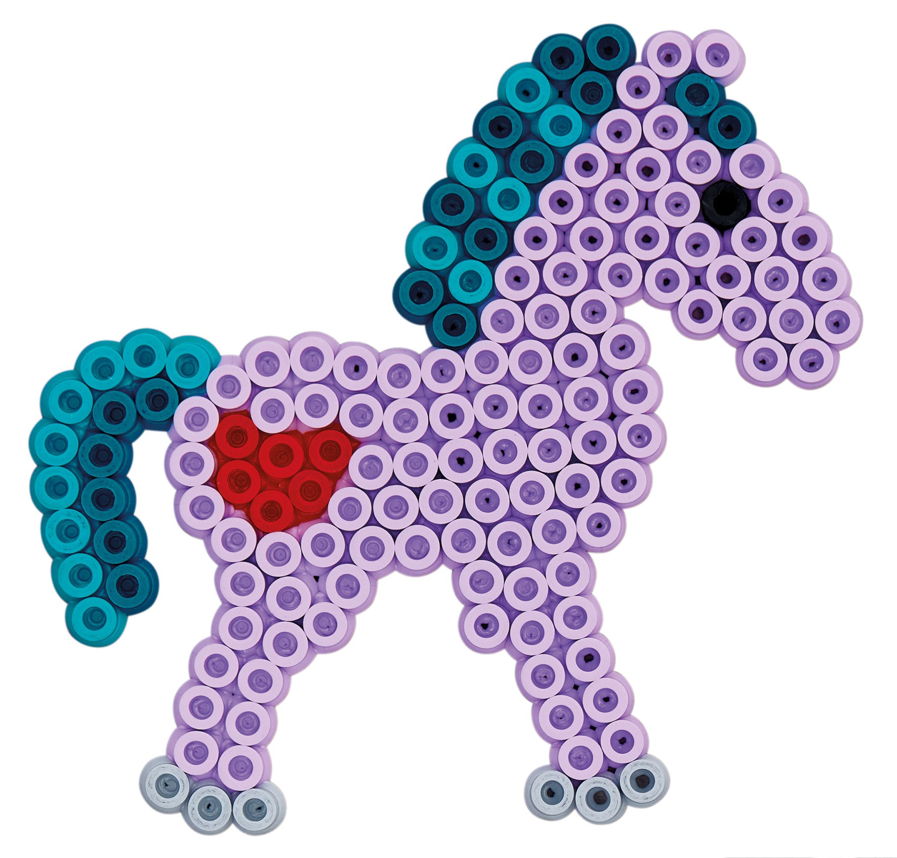 Packung für Spielgruppen Ca. 3.000 Perlen, 4 kleine Stiftplatten: Herz Nr. 236-05, Pony Nr. 321-07 , Blume Nr. 327-48 und Prinzessin Nr. 328. Motiv-Vorlage, Anleitung und Bügelpapier. So einfach wie 1, 2, 3 1. Perlen aufstecken. 2. Das Motiv mit Bügelpapier ab...