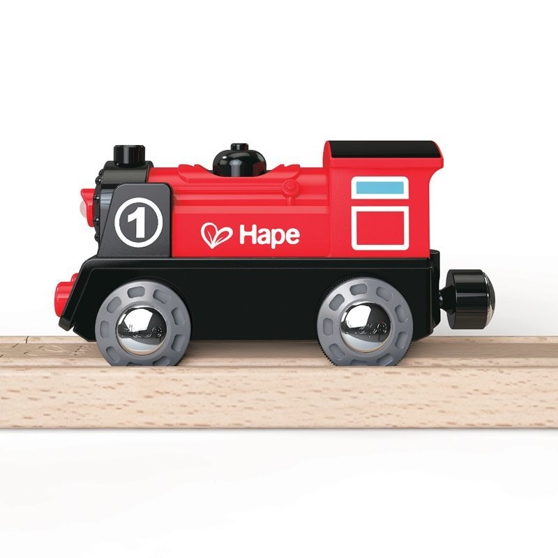 Auf Gleis 1 fährt ein: die batteriebetriebene Lokomotive Nr.1. Sie bleibt dank Scheinwerfer immer auf der richtigen Spur und kann sowohl vorwärts als auch rückwärts fahren. Die farbenfrohe Spielzeuglok fährt aber auch ganz ohne Batterie durch das Kinderzimmer....