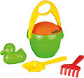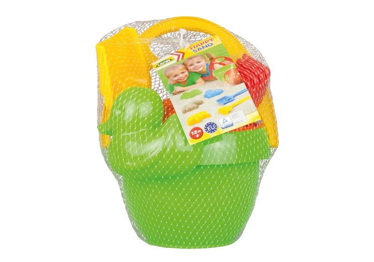 LENA Happy Sand Sandspielset, 5-teilig. Enthält Eimer, 21cm mit einem Fassungsvermögen von 2 Liter, Sieb, Schaufel, Rechen und Förmchen. - Geeignet für Kinder ab 12 Monaten. - Verpackungsart: Netz mit Hangtag und Produktinformationen. - MADE IN EUROPE. TÜV zer...