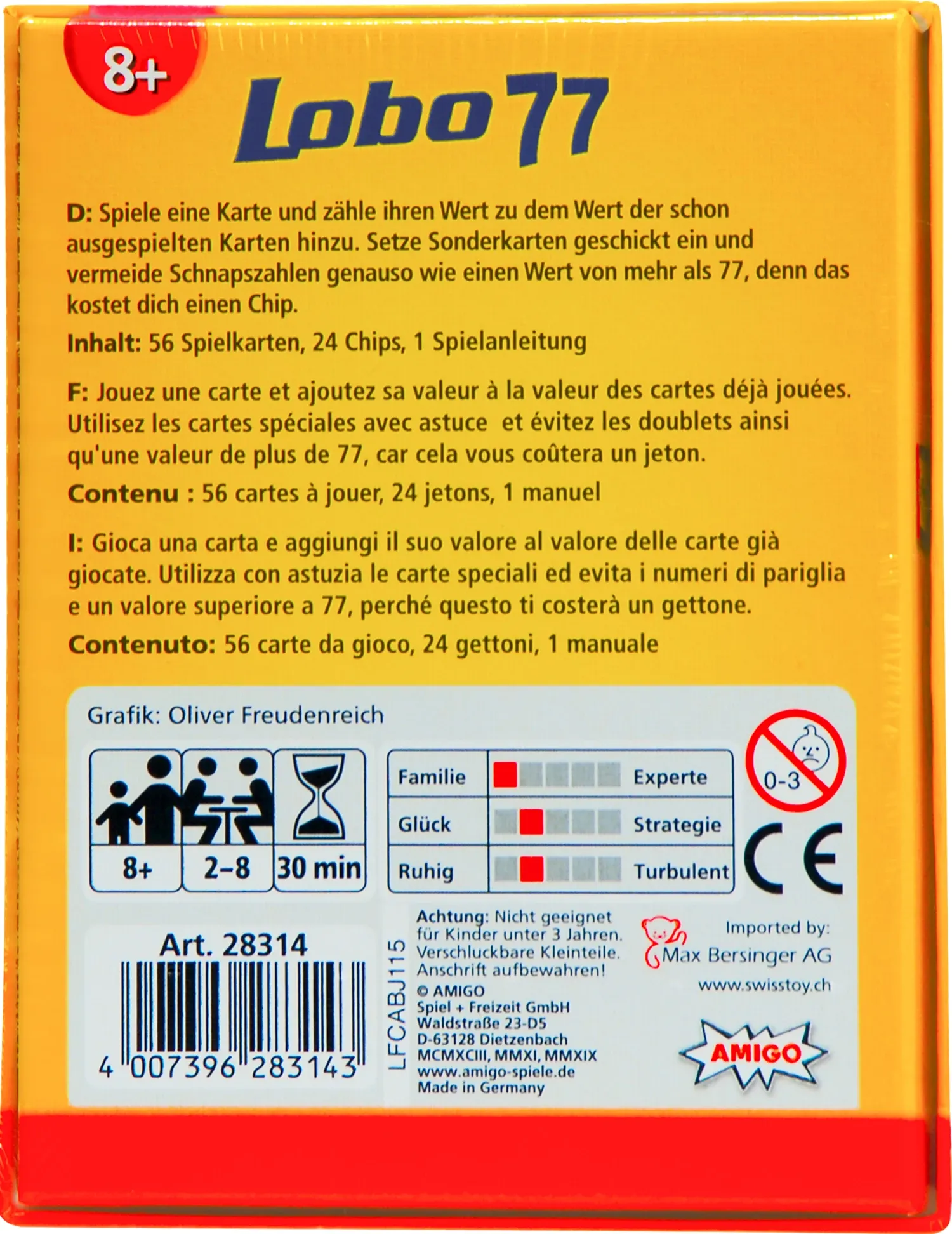 Die Werte werden aufaddiert. Immer höher und höher klettert der Wert unaufhaltsam und die Spannung steigt. Bloss die 77 nicht erreichen, sonst sieht's trübe aus. Da gilt es, die vorhandenen Aktionskarten klug einzusetzen!