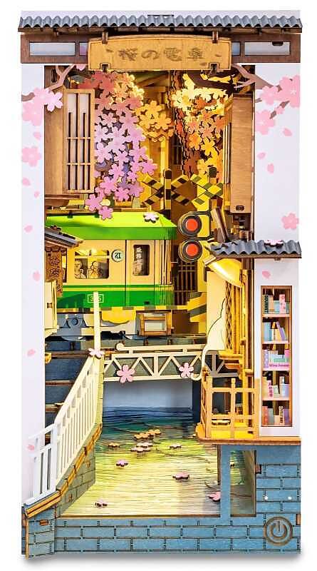 Ein Buchhaus mit unzähligem Zubehör, als Bücherstütze geeignet, LED- Beleuchtung, riesiger Bastelspass, Alter 14+, aufgebaut 19 x 11,5 x 22 cm, 340 Holzteile