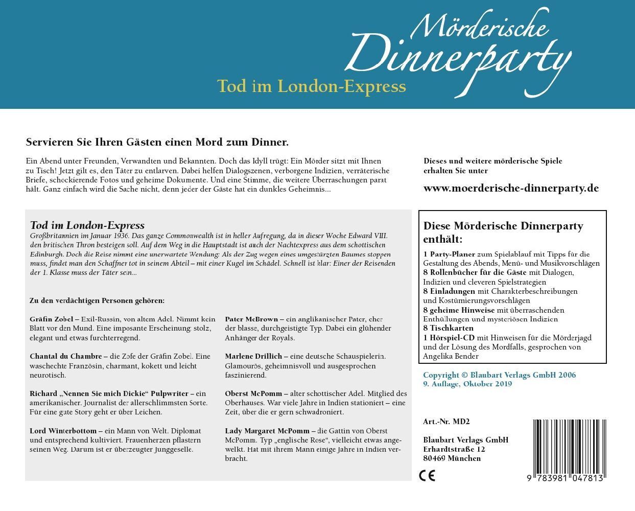 Mörderische Dinnerparty: das Krimidinner für Zuhause. Spannende Storys, schillernde Rollen und ein Partykonzept, bei dem die Organisation des Abends zum Spaß dazugehört. Schottland, 1936. Der Nachtzug nach London bleibt stecken und der Schaffner wird ermordet ...