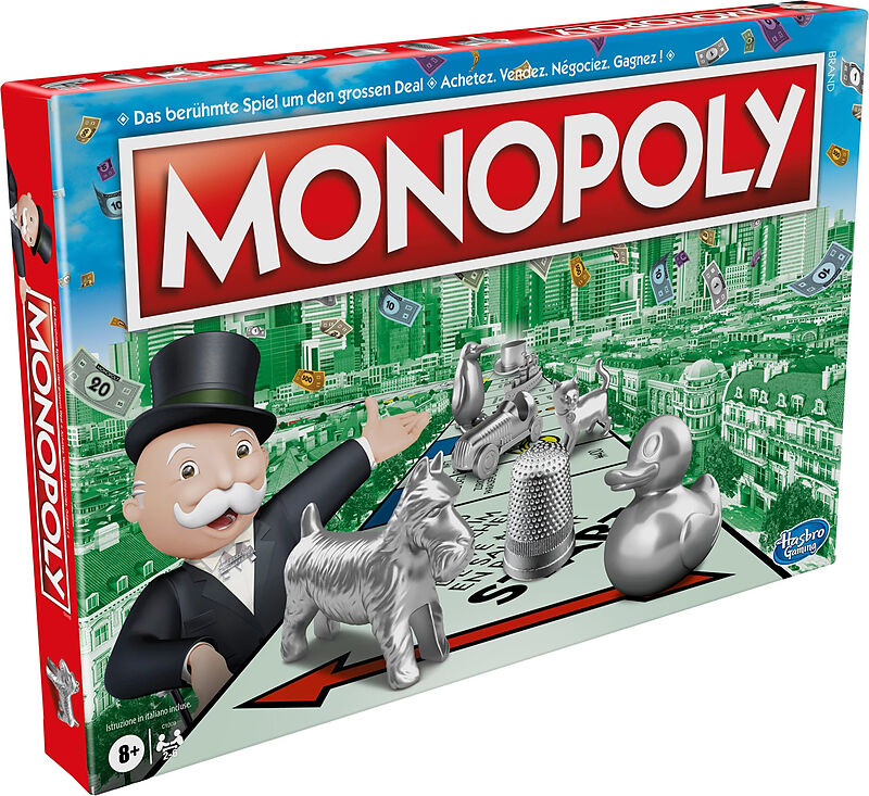 Beim klassischen Monopoly kaufen, verkaufen, träumen und planen sich die Spieler ihren Weg nach ganz oben! Hier heißt es, die Lieblingsfigur auswählen, auf LOS stellen, die Würfel werfen und los geht's! Nun geht das Rennen los, um so viele Grundstücke wie mögl...