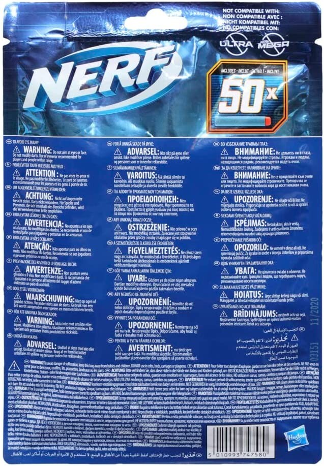 Mit diesem Nerf Elite 2.0 Nachfüllpack ist immer für genug Material bei ausgedehnten Nerf Battles gesorgt. Er enthält 50 Nerf Elite 2.0 Darts, um einen Nerf Elite 2.0 Blaster schnell nachzuladen.