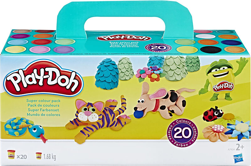 Eine kunterbunte Farbpalette für endlosen Knetspaß! 20 verschiedene Farben inspirieren zu immer neuen Knetkreationen. Mit über 1,6 kg Play- Doh in 20 wiederverschließbaren Dosen geht der Knetnachschub nie aus.