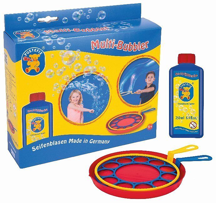 PUSTEFIX Multi Bubbler. Es darf gestaunt werden. Neben den riesigen Seifenblasen werden mit dem Multi-Ring mühelos phantasievolle Seifenschläuche entworfen, in denen noch viele kleine PUSTEFIX Seifenblasen schweben. Der Kreativität sind keine Grenzen gesetzt. ...